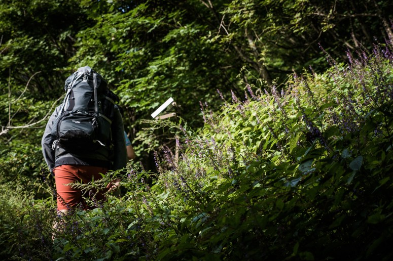 Around 1 hour, we reach Hirogawara (広河原), Minami Alps national park and start our long trekking at 7am. We only reach Shirane oike koya (白根御池小屋), the first rest place on lunch time. This first step, we take double time compare to normal Japanese.