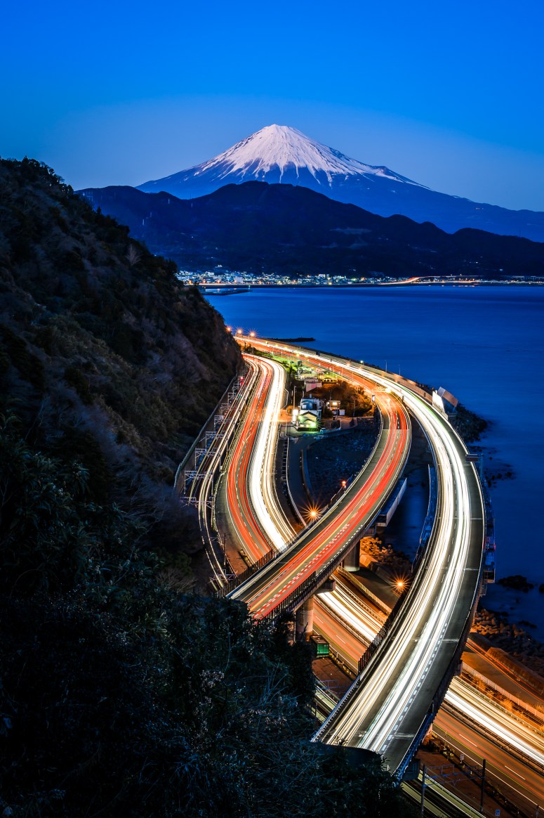 During evening, light trail from cars and trains will draw the line to Fujisan dragging your eyes to follow. It is such a beautiful place as it is.
